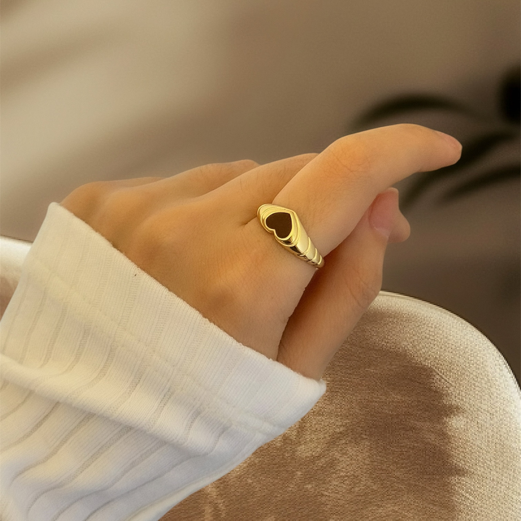 Descubra o charme irresistível do Anel Coração Marrom Semijoia, a cor do ano para as amantes de chocolate! Feito em resina marrom com detalhes que lembram um croissant, ele traz um toque único e sofisticado.