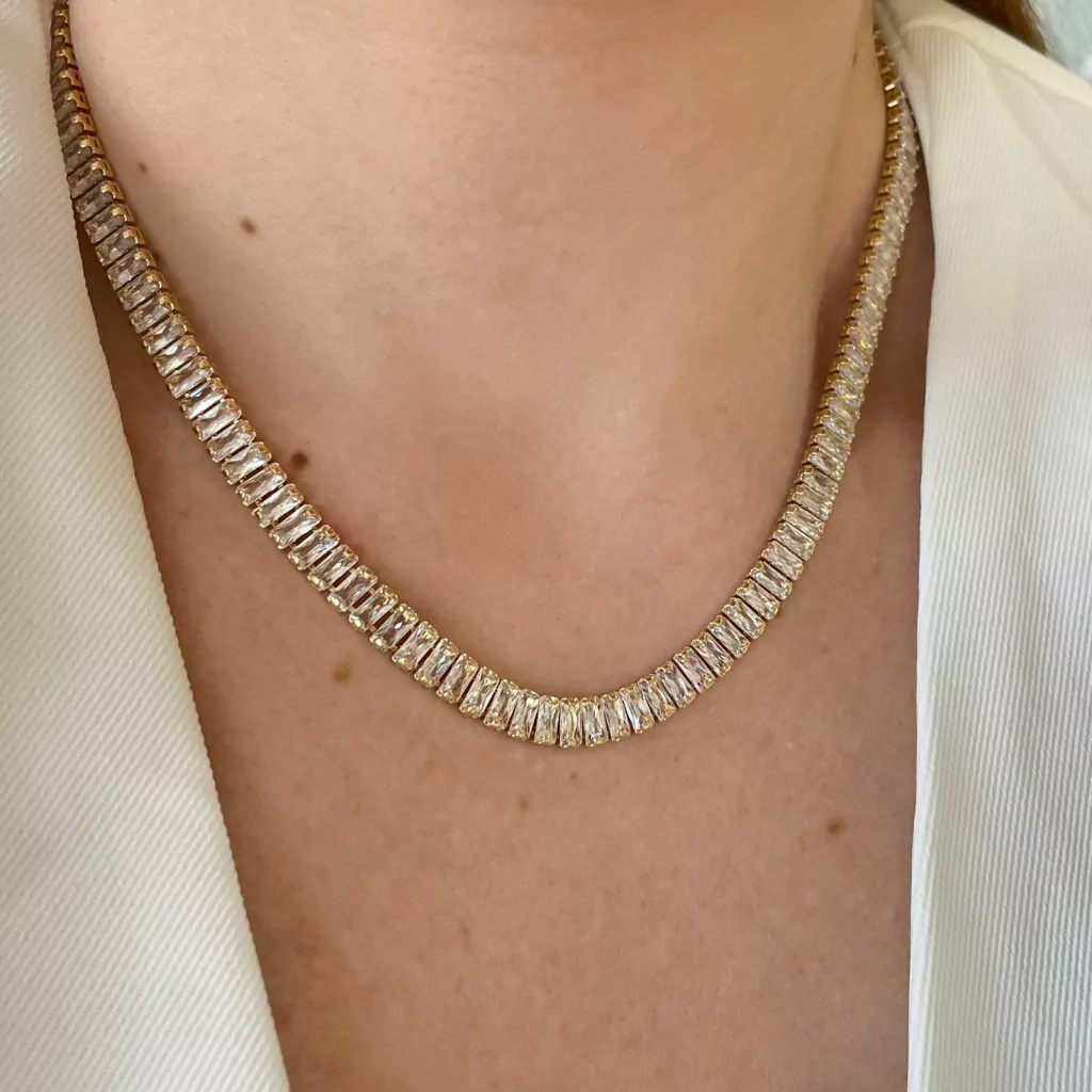Deixe a Riviera Baguete ser a estrela do seu porta-joias e realce sua beleza com sofisticação! 🌟